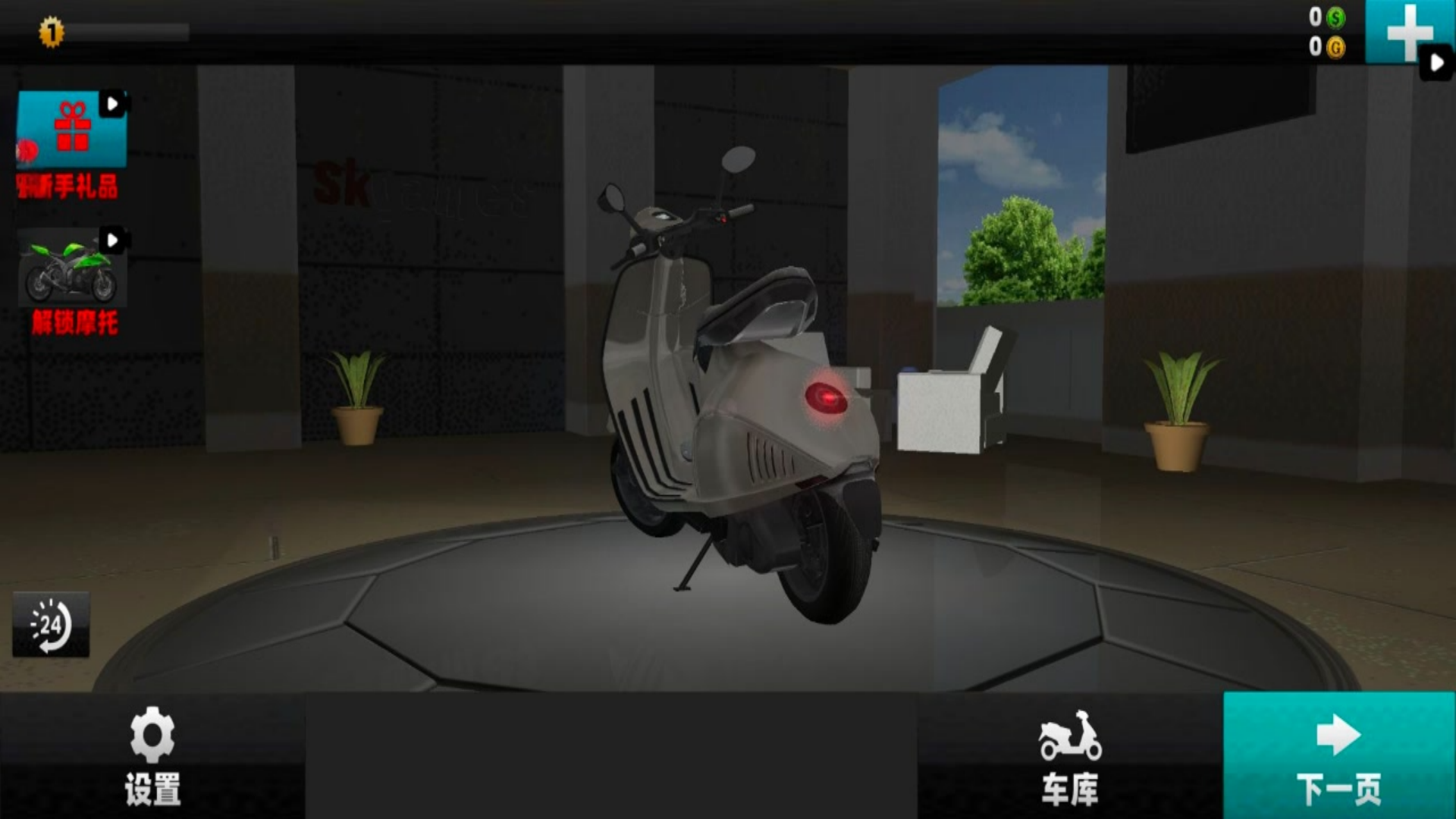 1、进入游戏,点击选择摩托车,第一人称视角驾驶摩托车开始竞速,在城市自由的穿梭。