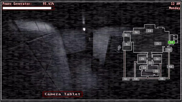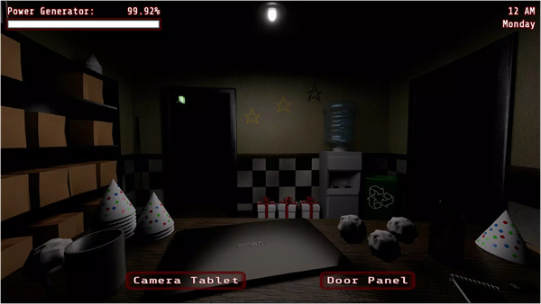 玩家将扮演夜班保安,在固定位置通过监控画面观察餐厅各区域动向,需要合理切换视角、注意音乐盒状态,并在敌人接近时及时戴上面具进行躲避,整个过程几乎无法喘息,任何一次犹豫或判断错误都可能导致失,游戏强调记忆、反应速度与心理承受力,让玩家在有限条件下熬过每一个夜晚。