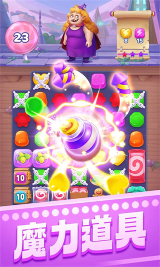 1、只需要把三个一样颜色的糖果结合在一起就可以完成消除,玩法简单又容易,适合所有年龄的人群当休闲游戏玩;