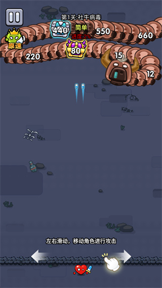 5、最后,病毒到达下面时,将闯关失败,需重新来过。