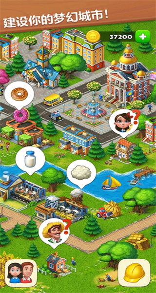 梦想城镇是一款卡通画风的模拟农场经营建设游戏,将经营属于自己的农场,需要种植农作物,收获果实,生产各种成品,与好友进行贸易往来,不断经营扩大自己的农场,打造属于自己的梦幻农场。