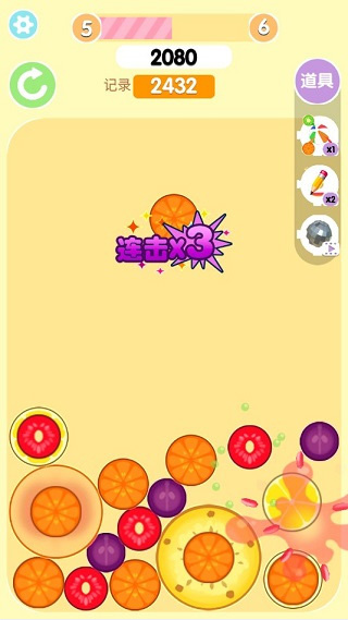 3、也能使用道具将水果进行消除;