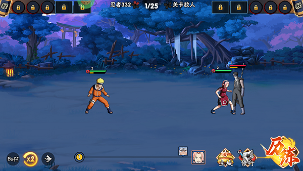 4、进入战斗之后,你完全可以当个运筹帷幄的指挥官。战斗是全自动的回合制模式,你的忍者们会根据站位和速度自动出手,释放华丽的忍术。你只需要在战前搭配好阵容,然后欣赏一场精彩的对决就行了。