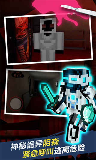 2、角色和背景使用了方块的设计,加上精彩的剧情和真实感的音效可以放松恐怖的气氛;