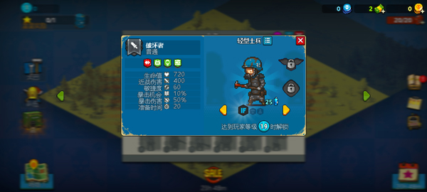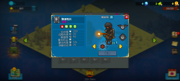 5、通过不断游戏,你可以解锁更多属性更强大的士兵和枪手单位。