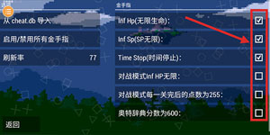 7、此时就可以看到我们导入的奥特曼格斗进化0金手指代码已经成功生效,【勾选右侧的方框】后即可开启金手指功能。