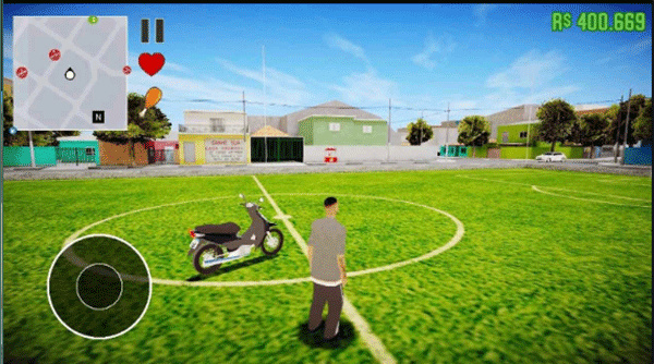 1、滑动屏幕左侧的圆形虚拟摇杆,控制角色在城市道路中向前行进,朝着目标区域移动。