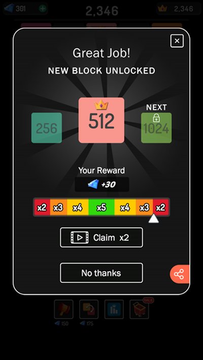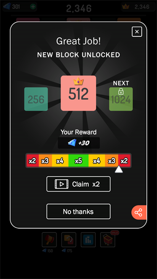 3、每当你成功合成一个新的数字,系统就会给你发点钻石作为奖励,积少成多嘛。