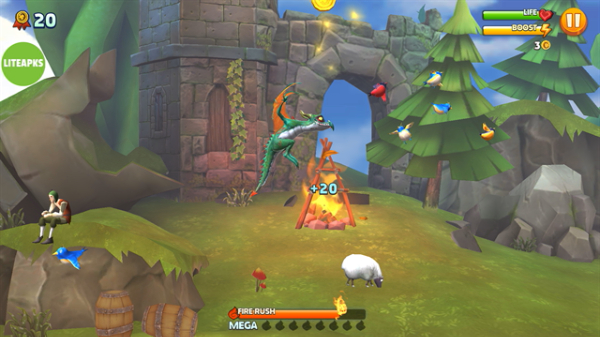 3、操控巨龙撞击并吞噬空中的鸟类,获取分数与成长资源,提升巨龙的生存能力。