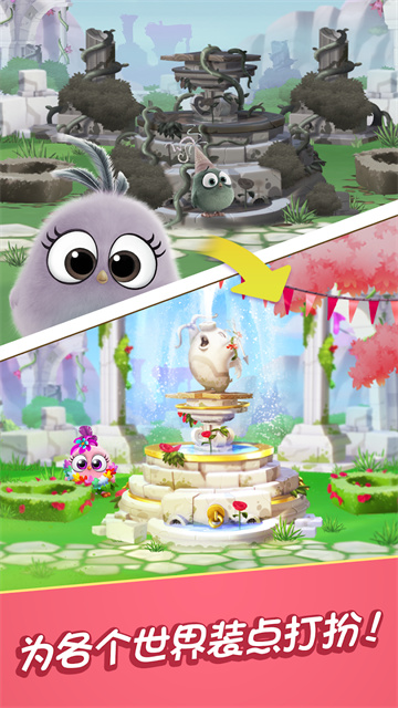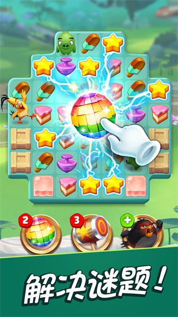 1、经典怒鸟IP结合三消玩法,熟悉角色加上简单玩法;