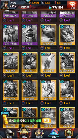 4、军事演习是考验你部队综合实力的好地方。随着你通关的层数越来越高,不仅能证明你的实力,还能解锁阶段性的奖励,其中自然也少不了钻石。