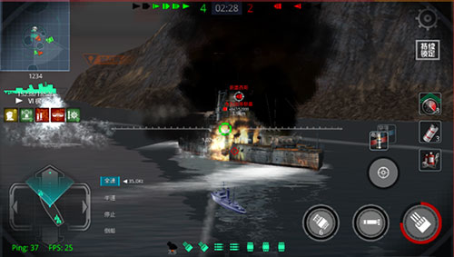切换到鱼雷模式后,你的鱼雷发射管上会伸出一条指示线。在你能够发射的角度内,会显示一个绿色的扇形区域;如果角度不对,就会显示一条红色的线,提醒你调整船身。在鱼雷模式下,再点一次鱼雷按钮,鱼雷就“嗖”地一下出去了。