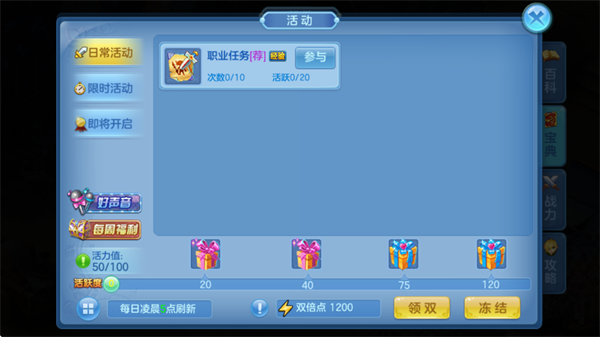【推荐】每天20次职业任务必须清完,给的奖励相当丰厚,是经验和资源的主要来源。