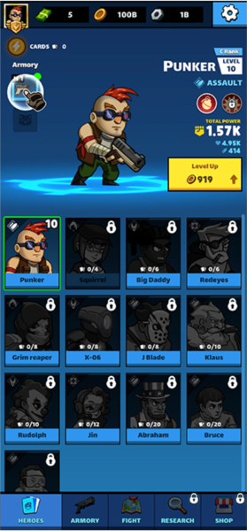 2、在屏幕下方,你可以看到能够选择出战的英雄角色。挑选一个你喜欢的,然后点击进入,准备开始你的第一场战斗。