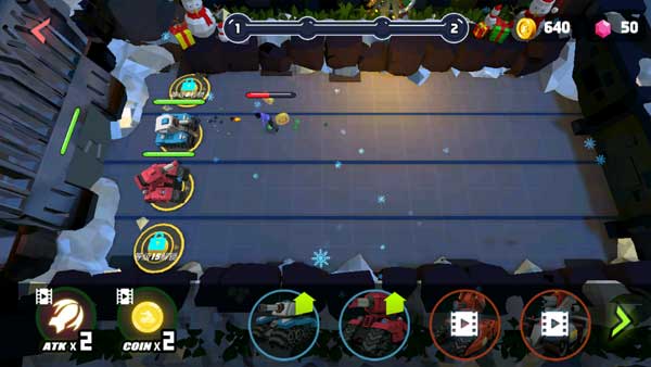 1、主界面布局挺常规的,老玩家应该都看得懂。瞅瞅右上角,那是你的金币和粉水晶,主要靠打架和看广告搞到手。左上角就是个人资料,换个头像改个名啥的都在那。屏幕中间那一排是你的坦克车库,颜色和型号都能换,不过得用金币或者粉水晶解锁。最下面是几个游戏模式,大乱斗、限时战场啥的,想玩哪个点哪个。
