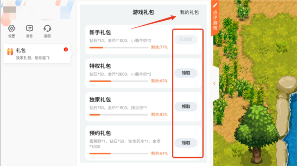 6、点开“加速”后,里面是各种游戏礼包。领取过的礼包也不怕找不到,在“我的礼包”选项里能看到所有历史记录。