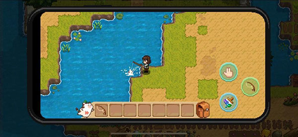 2、有了鱼竿之后,就可以找个有水的地方开始钓鱼了。不同的水域、鱼竿、鱼饵和垂钓地点,都会影响钓鱼的难度,所以并没有一个固定的成功秘诀。对于刚开始接触钓鱼的玩家,我个人建议可以先在出生点附近的小桥边练习,那里的成功率会高很多。