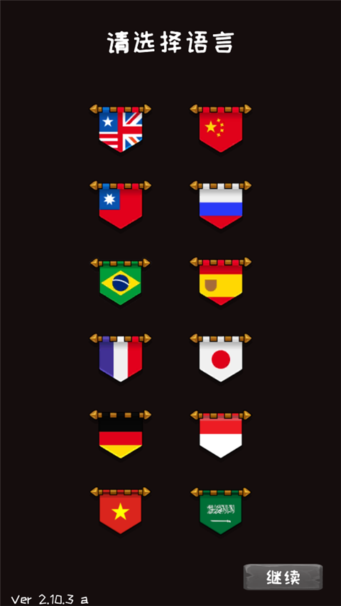 1、游戏下好打开就这界面,语言这块自己看着办,选个中文就完事了,然后点“继续”。