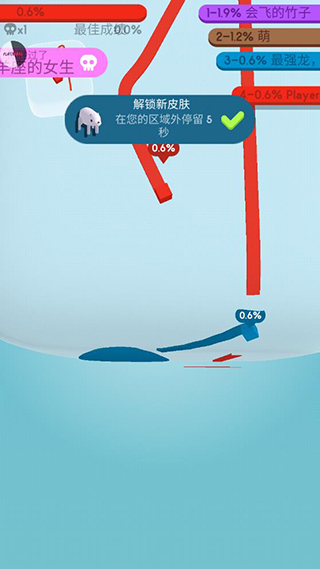 4、当你的行进路线首尾相连,形成一个封闭区域时,这片被圈起来的地方就会瞬间染上你的专属颜色,这标志着你成功占领了它,让自己的地盘变得更大了。