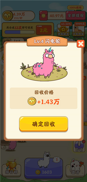 农场上会不断的产生普通羊驼和红包羊驼,普通羊驼能够自动兑换金币,而红包羊驼那就不得了了,可以自动兑换红包,可以完成提现。
