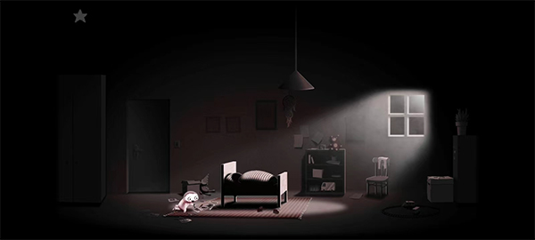 1、游戏一开始,咱们会看到一个小男孩在自己房间里涂鸦,画完画就乖乖上床睡觉了,一切看起来都很正常。