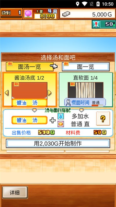 5、有客人上门点单,你就得选对应的汤和面,选好了就点“制作”。瞅瞅下面这个界面。