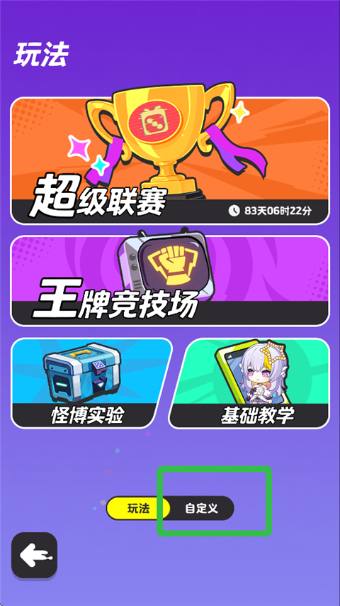 进入玩法界面后,请点击【自定义】模式。。