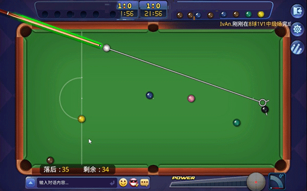 - 位于右上角的母球图标,则可以让你调整击球点,打出各种漂亮的旋转球。再加上出色的物理引擎,完美地还原了真实台球的打击手感和运动轨迹。