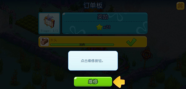 7、然后消耗刚刚获得的木头,点击修理按钮来完成修复工作。