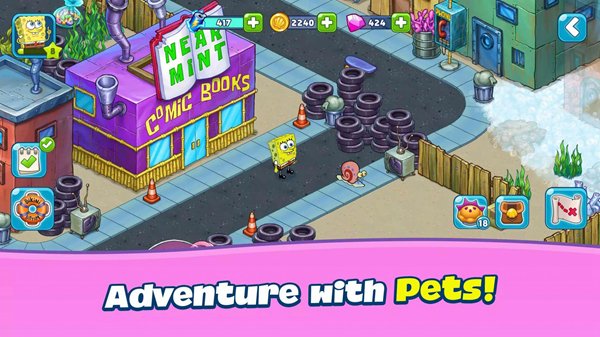 这款游戏做得非常用心,不只是把海绵宝宝、派大星这些角色放进来那么简单,而是把整个IP的精髓都融入了进去。你能在游戏里看到各种经典角色,这让整个冒险过程充满了亲切感和乐趣。而且,游戏里有超多不同的关卡和挑战,玩起来一点都不会觉得腻。在比奇堡的海底世界里,我可以养宠物,种种菜,体验各种休闲玩法,感觉自己真的成了那里的一员。除了常规的主线任务,最让我惊喜的是,游戏内容是和动画原创团队一起打造的,所以总能发现一些意想不到的彩蛋和新故事。
