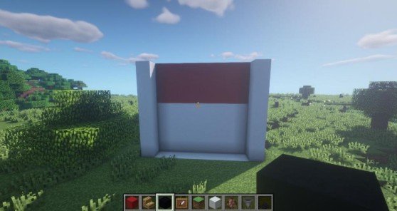 然后,在任意一侧的墙体上,从外墙往里数两格的位置,向上搭建4格高的白色混凝土,这步是为了给屋子做个分层标记。