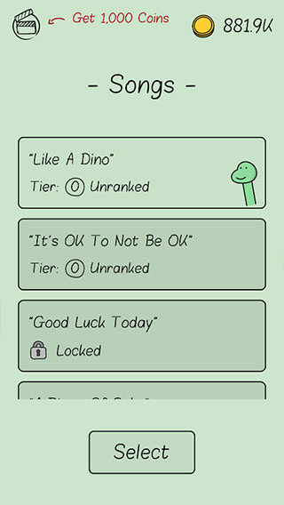 2、金币可用解锁好看动物皮肤,选择完后,点击Select就可换上了。