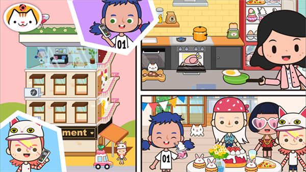 米加我的小镇是一款自由模拟游戏,一个可以随意走动的小镇世界,街道、房屋、商店在不同角落,每个地方都能进入看看,厨房可以做饭,卧室可以摆放物品,学校和医院也有不同场景,没有固定目标,没有压力,更像是在慢慢体验一段日常生活。