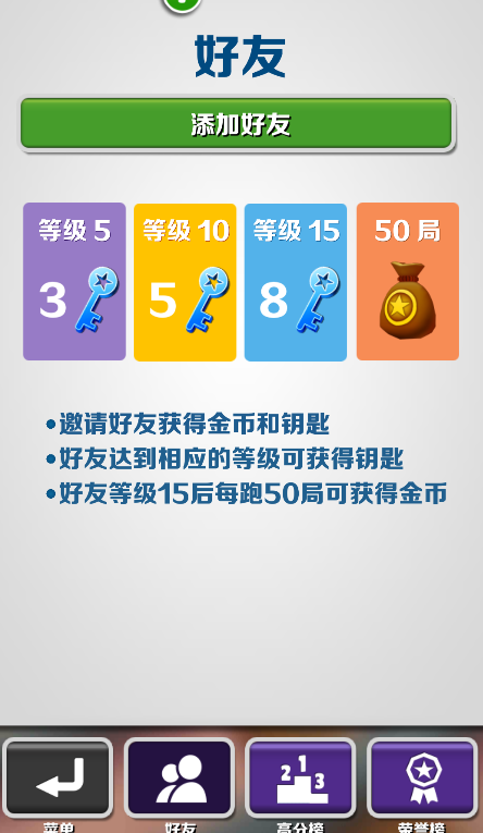 3、游戏里的道具用好了能救命。火箭背包能让你上天飞一段,无视所有障碍;超级运动鞋能让你跑得飞快;金币磁铁就是个吸尘器,周围的金币全吸过来;双倍积分能让你的分数蹭蹭往上涨。