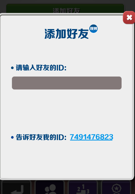 3、然后把你想加的哥们的ID输进去就行了。你要是不知道自己ID是啥,也在这页面能看到,截图发给别人就完事。