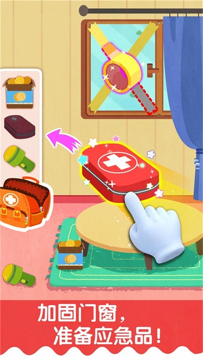 3、应用内采用了非常逼真的生活情景模拟,让知识不再停留在书本上。例如,它会引导孩子在下雨之前,赶紧把晾在外面的衣服收回屋里;或者在台风警报发出后,学习准备一个应急物资包,并且在模拟的地图上找到最安全的避难场所。通过这些亲手操作,孩子能牢牢掌握防灾准备的关键步骤。