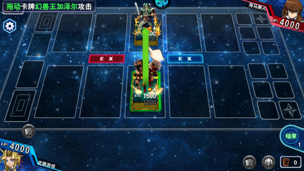 4、想打人的时候,直接把你的怪兽卡拖到对面的怪兽卡上。