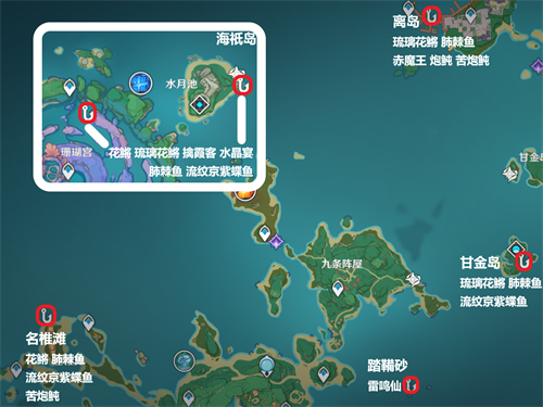 璃月港:甜甜花鳉、擒霞客、水晶宴、斗棘鱼、炮鲀