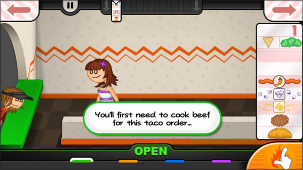5、客人会告诉你他要吃啥样的塔可,你的人物会自动拿小本本记下来,不用你操心。