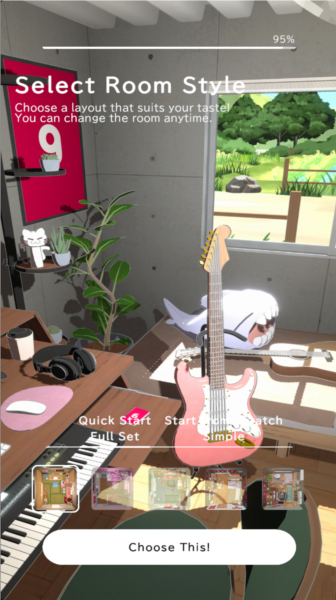 3、接着,系统会给你五种不同感觉的房间让你挑,选一个你最心仪的吧。进入房间后,就能看到你创造的角色安安静静地坐在书桌前了。