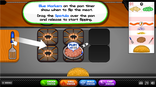 8、当铁锅的线条到达蓝色位置时,需要通过铲子进行翻动食物。