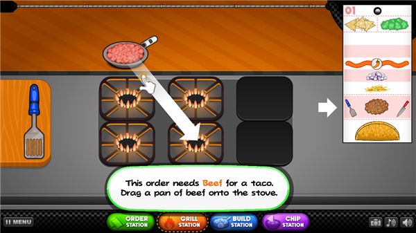 7、左上角是客人要求放的食材,我们点击锅将他拖动到灶台进行烹饪。