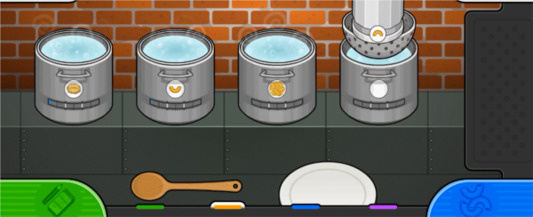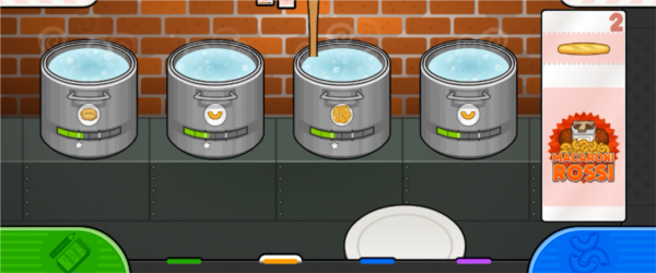 5、切换到煮面台,意面的熟度分为半熟和全熟,锅底下的两条线就分别是半熟和全熟的标准。在煮到一半的时候,需要用勺子搅拌。