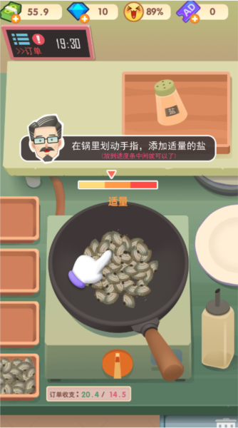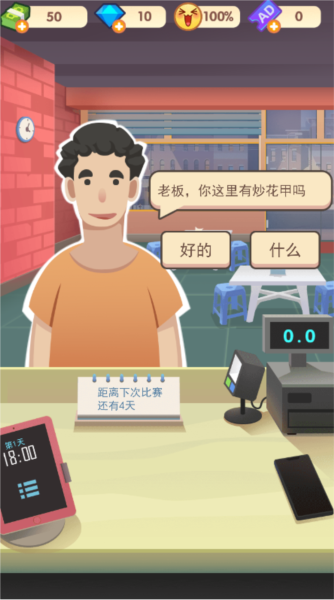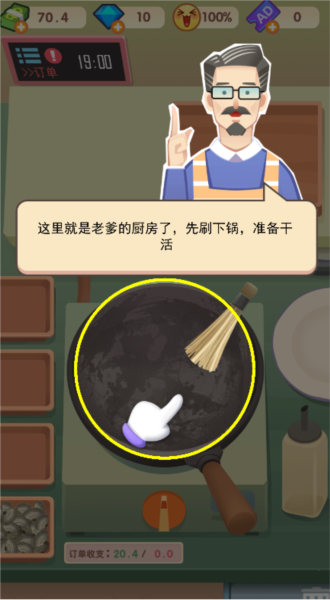 1、进入老爹热炒店最新版游戏后,你会接待各种类型的客人,首先需要了解客人的订单。