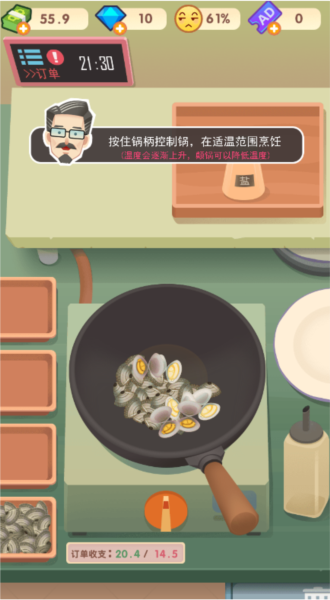 全新的挑战关卡随着经营深入不断开启,玩家在开心的烹饪过程中不仅能学会各种大厨技巧,更能通过完成有趣的经营目标,体验从热炒新手到餐饮大亨的进阶乐趣。