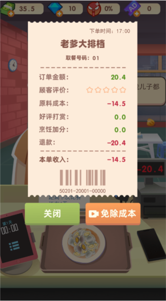 7、食物做好后可以装备给客人,然后收取盈利即可。