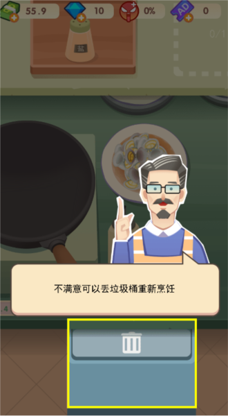 8、当菜品不满意时可以丢垃圾桶重新烹饪。