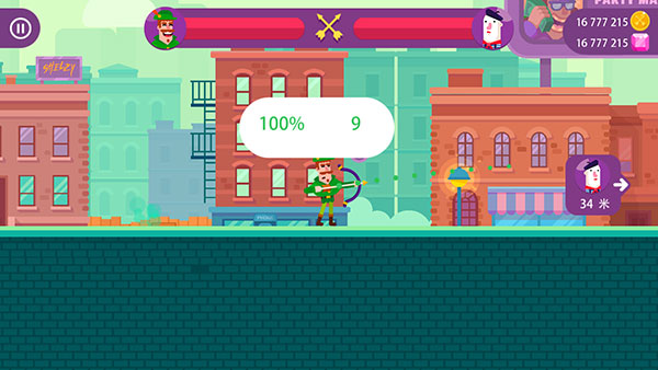 游戏整个是横版2D的,说白了就是控制一个纸片人,用手里的家伙去砸另一个站在远处的纸片人。这游戏的美术风格挺魔性的,角色都跟纸片一样飘,但颜色用得特别花哨,不像别的纸片游戏那么素,整个世界看起来五颜六色的,有点精神污染那味儿了。