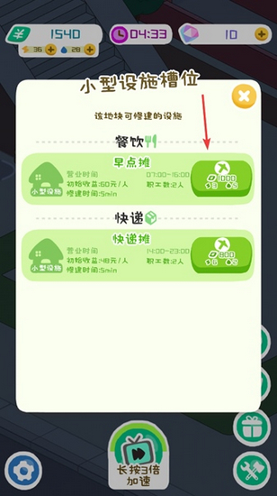 3.选择早餐摊之后,我们只需要等待系统进行建造,期间可以利用钻石进行加速