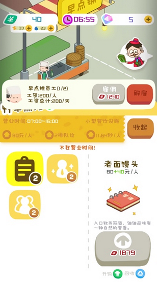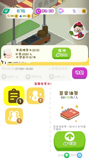5.这时候就可以利用聘用来招募一个员工帮助自己卖早点